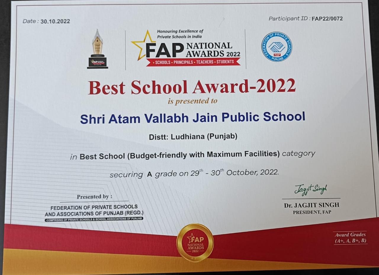 Shri Atam Vallabh Jain Public School started with the inspiration of Jain Saint Shri Vijay Ratanakar Surishwar Ji Maharaj. He had a dream to provide quality education to weaker section of the society to make their future bright. Children are the most precious gift of God. We are here to provide them the best and quality education at a very reasonable cost. We have a very highly qualified and dedicated team of teachers who are preparing the students to get success in life without any leaps and bounds.